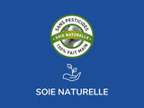 Soie hypoallergénique : La fibre de Soie est constituée d’une protéine proche de celles de la peau : la fibroïne est totalement préservée dans notre processus de fabrication.